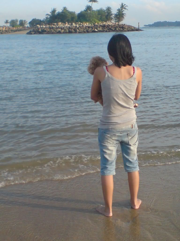 p/s: mummy really loves the sea, she carried me very near the water! so scary then she ask daddy take alot pictures...